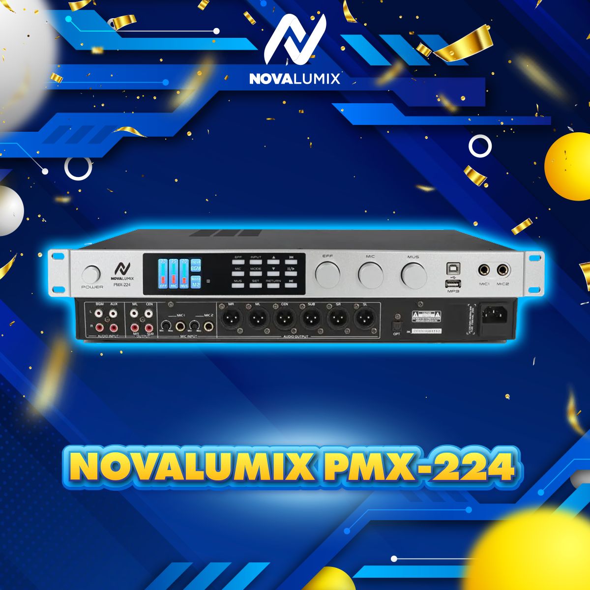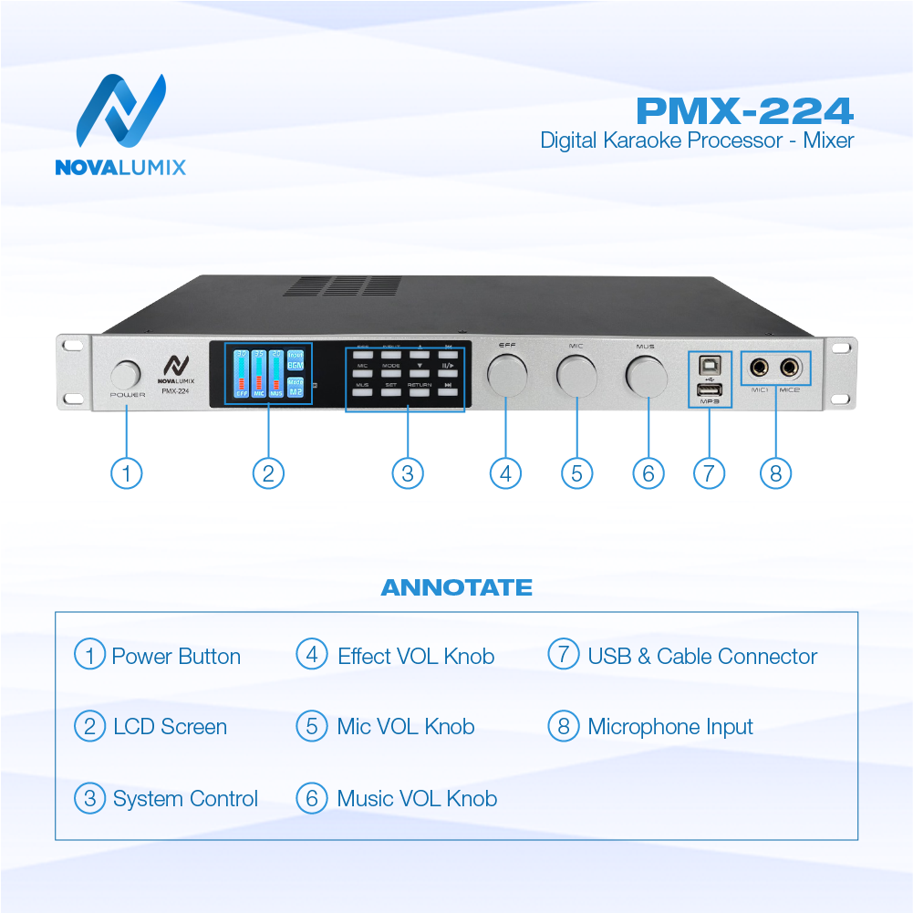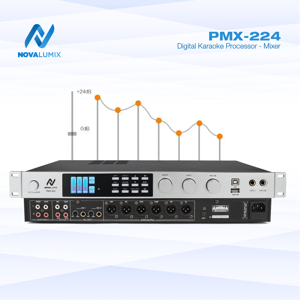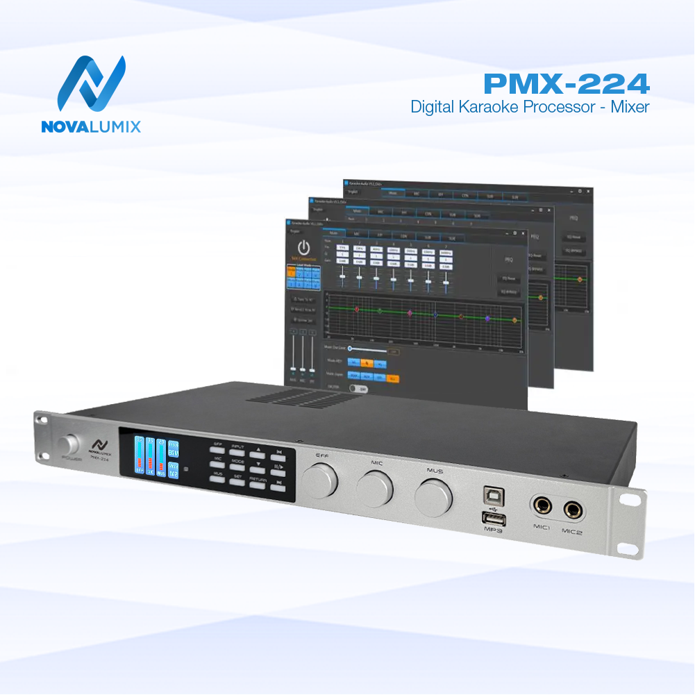 🎤 Introducing the NovaLumix PMX-224 Digital Karaoke Mixer Experience a seamless fusion of cutting-edge technology...